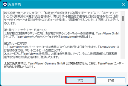 ※こちらはTeamViewerを使用するうえでの、ソフトウェア使用許諾契約同意となります。