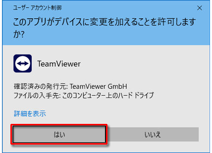 ※[実行]クリック後、下図のような「ユーザーアカウント制御」が表示された場合、[はい]をクリックしてください。