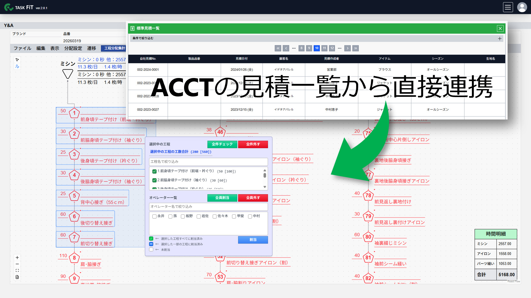 生地の持ち運びや取り置きなどの縫製稼働におけるロスタイム調整 - ユーザー時間単価